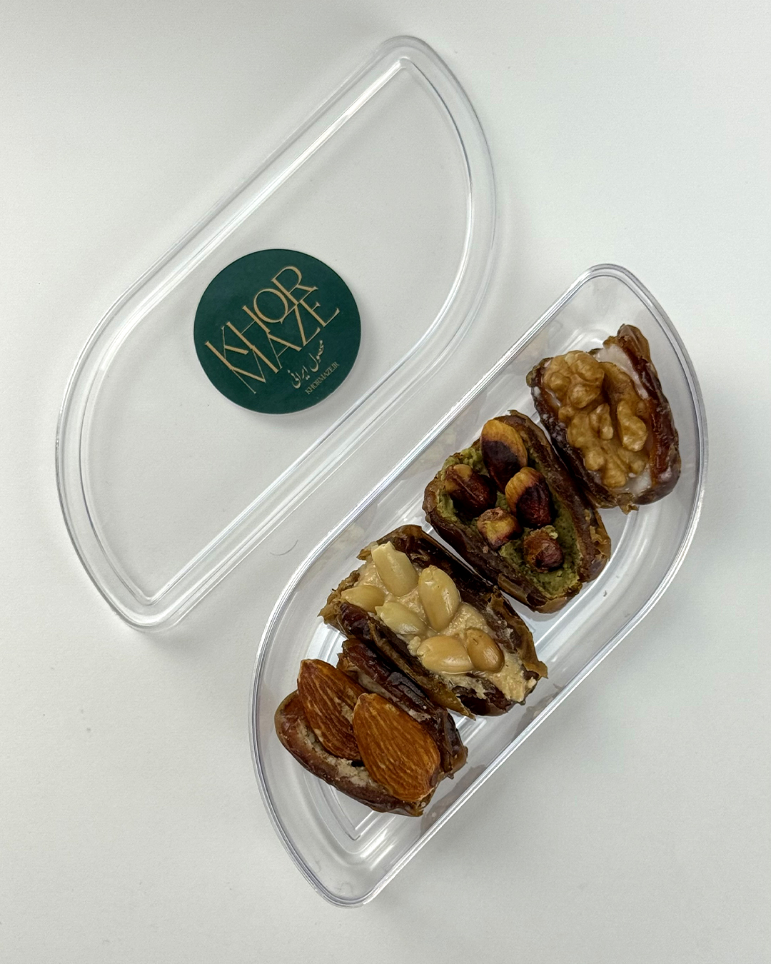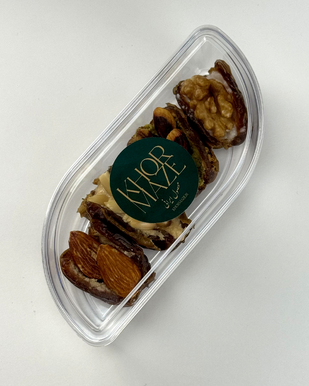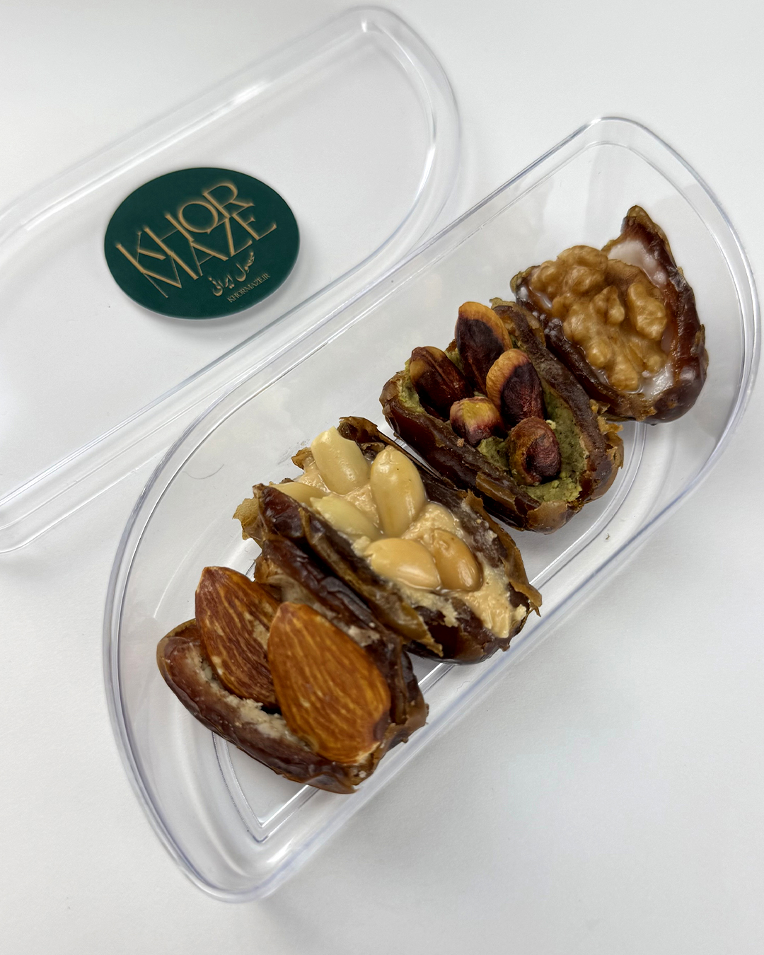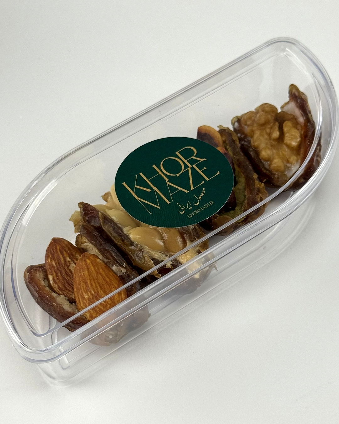 خرما پیارم پر شده با کره و مغز با چهار طعم گردو ٫پسته٫بادام ٫ بادامزمینی