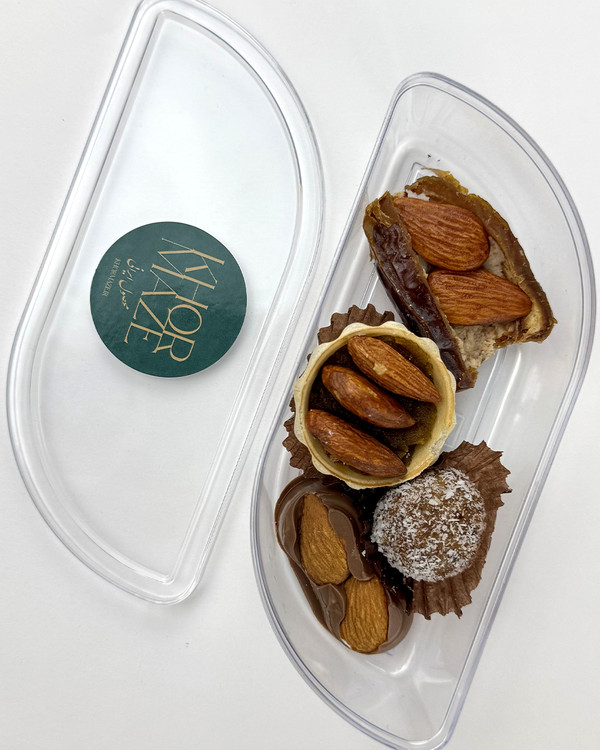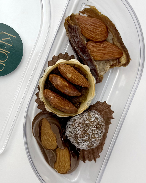خرما پیارم ٫شکلات٫ترافل ٫حلوا همگی با مغزی بادام درختی: ۴ ایتم میکس با مغزی بادام درختی