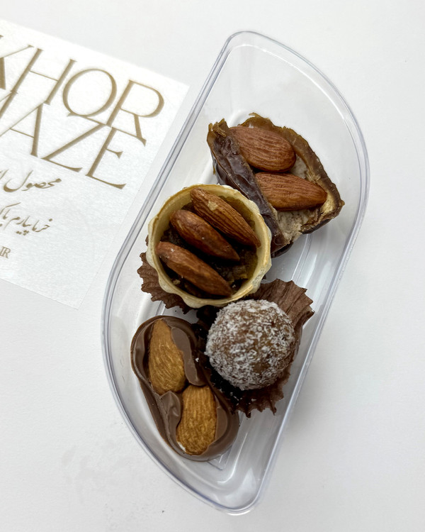 خرما پیارم ٫شکلات٫ترافل ٫حلوا همگی با مغزی بادام درختی