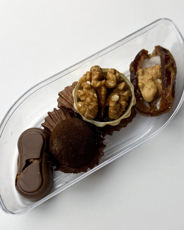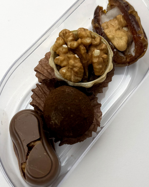 خرما پیارم ٫شکلات٫ترافل ٫حلوا همگی با مغزی گردو: ۴عدد ایتم میکس با هم