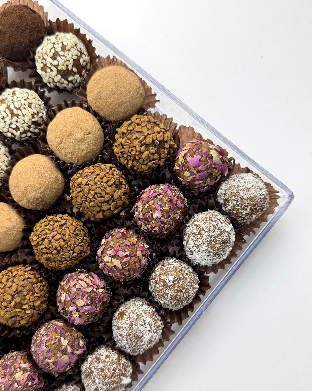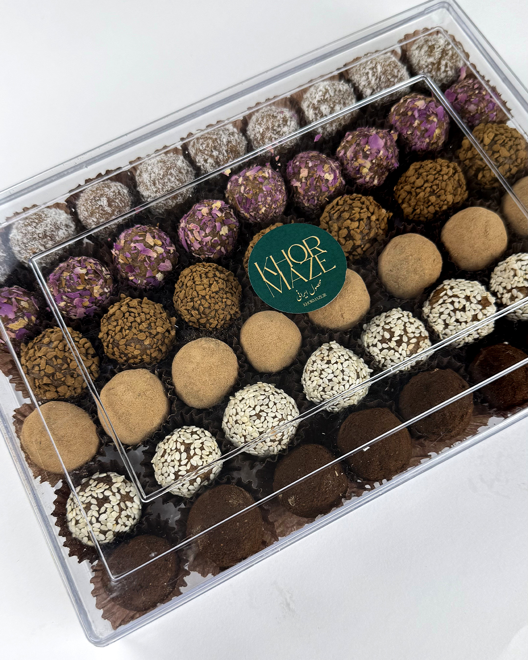 خرمای چرخ شده با روکش های متنوع قهوه٫گل محمدی٫دارچین٫قهوه پودری٫کنجد ٫نارگیل